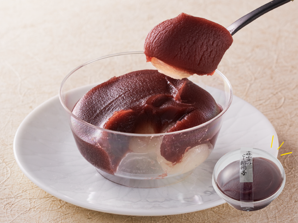 心ゆくまでこし餡を味わうならこちら。北海道十勝産小豆を白州名水で自家炊きしたこし餡を、お団子が隠れてしまうほどたっぷり乗せました。シンプルだからこそ、素材の魅力が存分に味わえます。