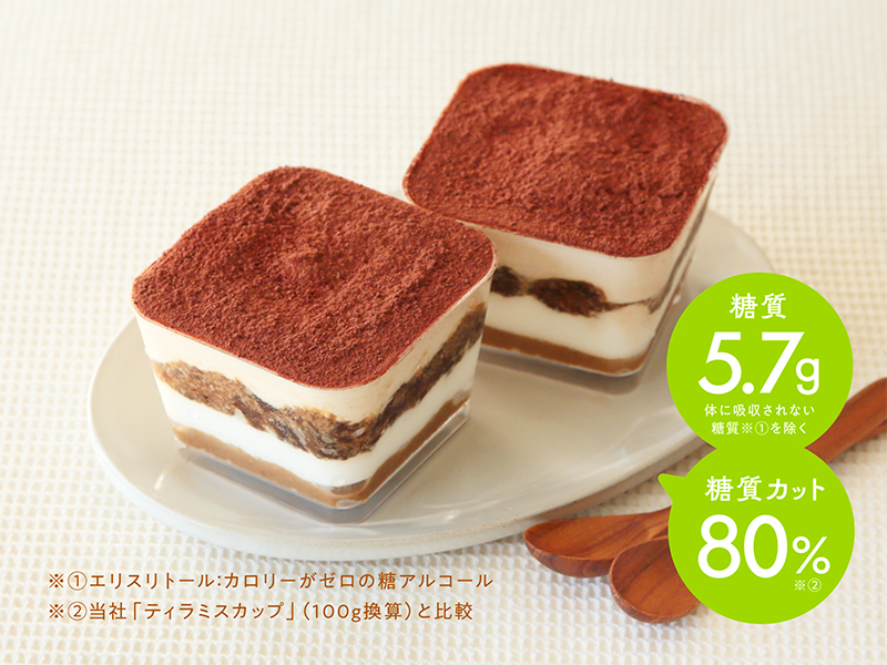 糖質(体に吸収されない糖質※①を除く)80%カット※②のティラミス