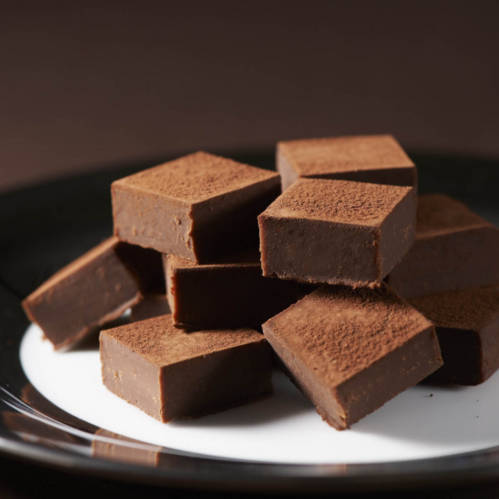 チョコレートのなめらかさ、味と香りの広がりを存分に堪能できる生チョコ。ミルクチョコレートとスイートチョコレートを独自の配合でブレンドしたミルクとビター、ホワイトチョコレートに京都府産宇治抹茶を配合した抹茶の3種をご用意しました。