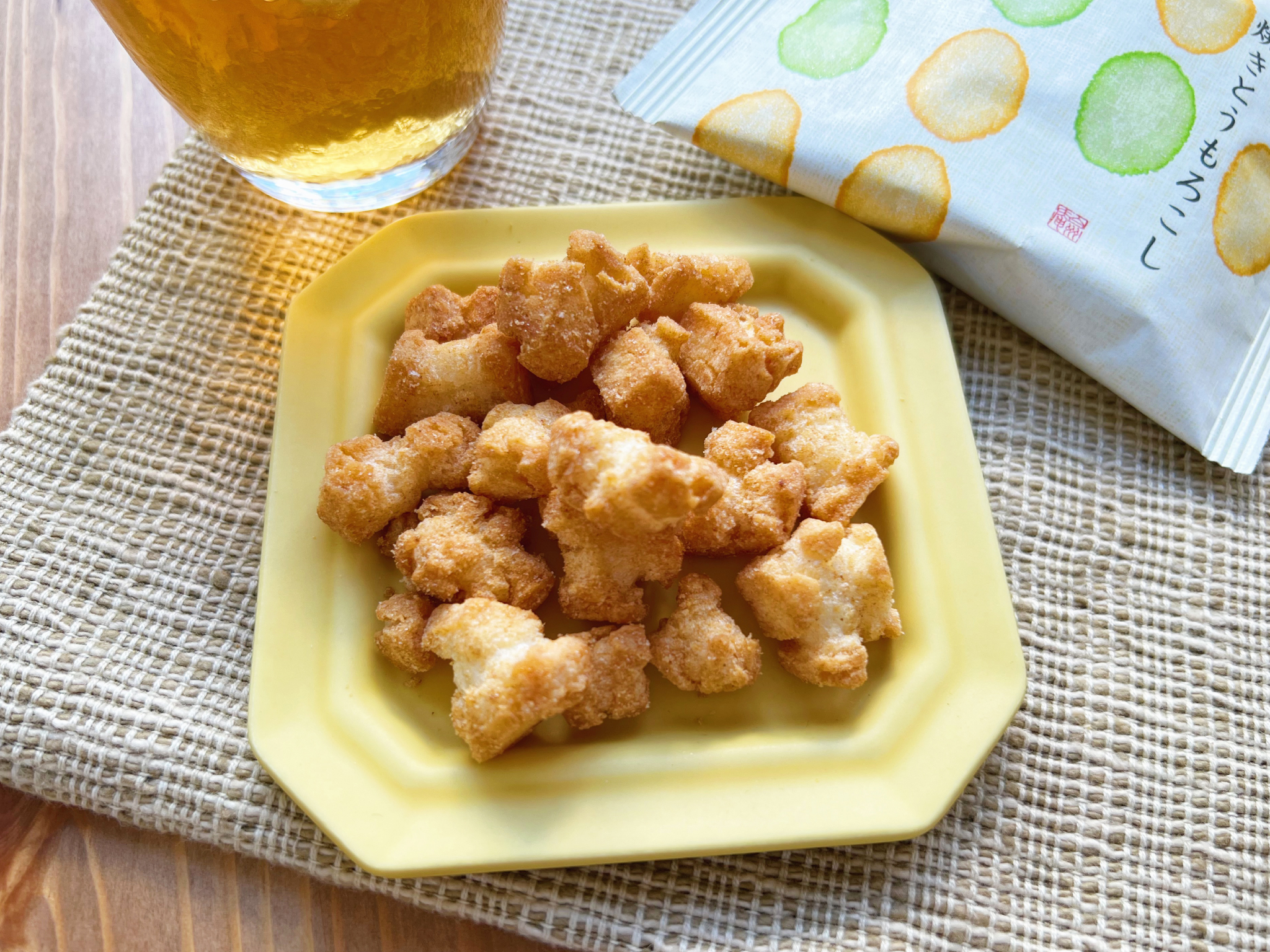 カラッと揚げた揚げ餅を、ほんのり甘く醤油が香ばしい焼きとうもろこし味に仕上げました。その味は、まさに焼きとうもろこしを食べているかのような感覚。濃厚な風味とサクサクの食感をお楽しみいただけます。